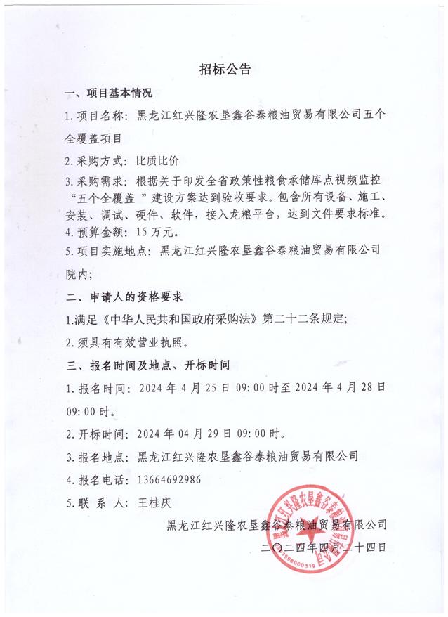 黑龍江紅興隆農(nóng)墾鑫谷泰公司五個(gè)全覆蓋項(xiàng)目招標(biāo)公告